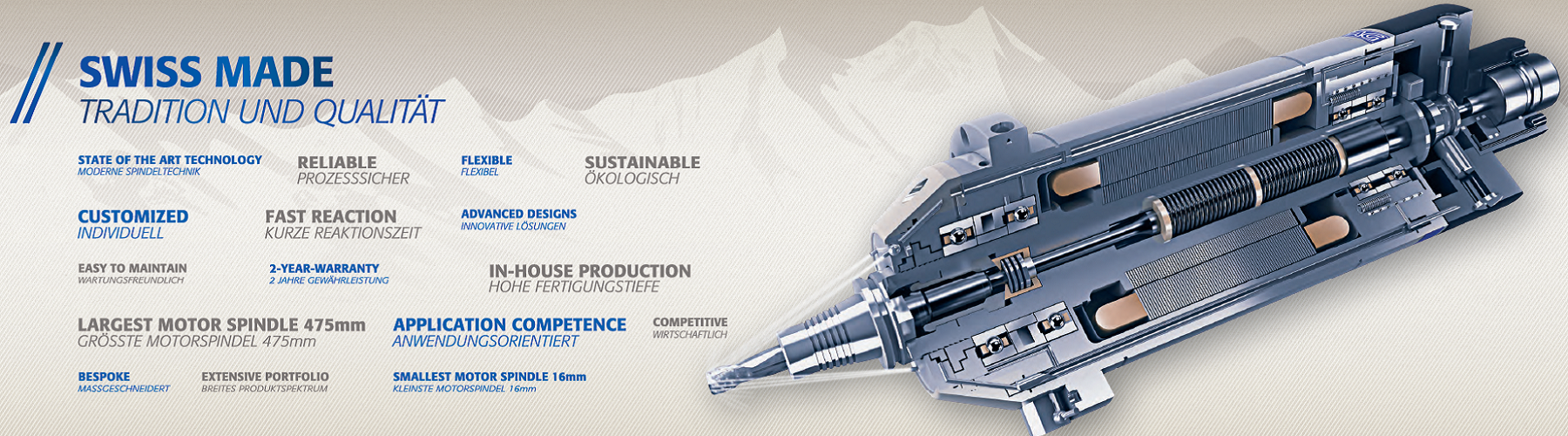 瑞士IBAG電主軸公司 成立于1941年2月,并于1960年開始研發(fā)電主軸。到目前,瑞士IBAG電主軸已成為業(yè)界影響深遠(yuǎn)、廣為推崇的電主軸品牌。作為最早進(jìn)入中國市場的電主軸品牌,憑借優(yōu)良的品質(zhì)、優(yōu)美的外觀,簡潔可靠的結(jié)構(gòu)設(shè)計,IBAG電主軸不僅為中國高端制造提供了高端電主軸選擇,同時也為國內(nèi)電主軸生產(chǎn)企業(yè)起到了模范作用,促進(jìn)了國內(nèi)電主軸行業(yè)最初的發(fā)展。瑞士IBAG電主軸公司多年僅聚焦于電主軸的研發(fā)和生產(chǎn),電主軸產(chǎn)品應(yīng)用領(lǐng)域廣泛,如微孔加工、精密雕刻、鏡面加工、鉆攻、各式加工中心、雙軸擺頭等,瑞士IBAG電...